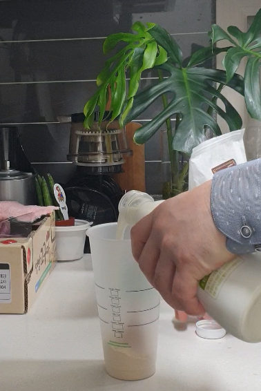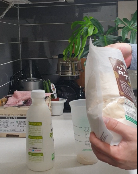 한 번 두 번 세 번 세월아 내 월아. 열심히 미숫가루와 우유의 혼합을 합니다.