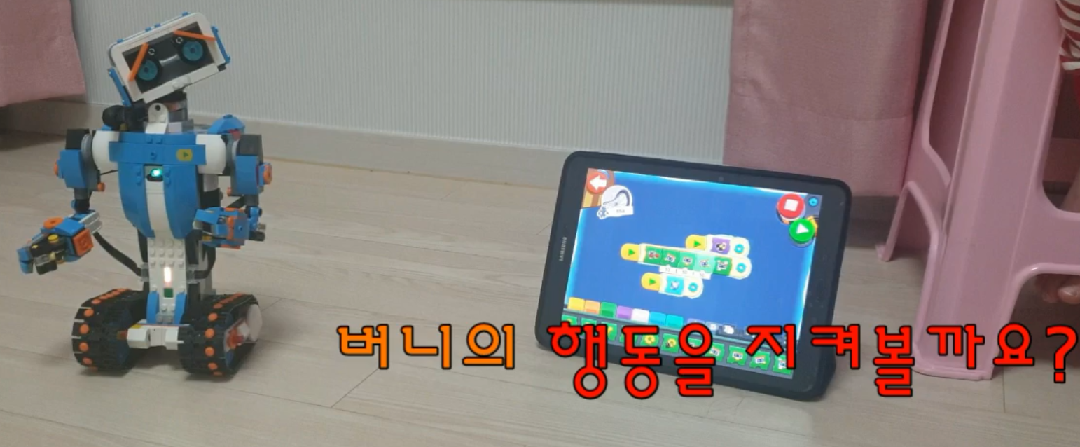 작은 로봇, 까불이 로봇, 코딩 로봇, 못났지만 귀여운 버니의 행동 하나하나를 지켜보며 오늘도 마무리합니다.