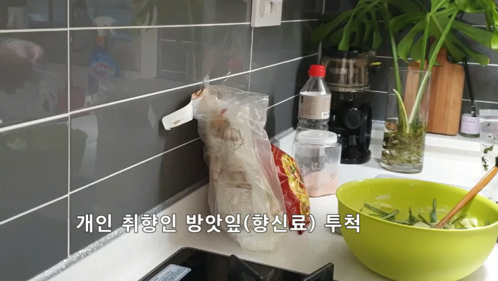 태생이 경남 아래쪽 지방인 지라라 좋아하던 방앗잎 사서 넣었습니다. 모르시는 분들은 네이버에 방앗잎이라 쳐보시면 향신료 재료로 나옵니다. 물론 향과 맛은 책임질 수 없음을 알려드립니다.