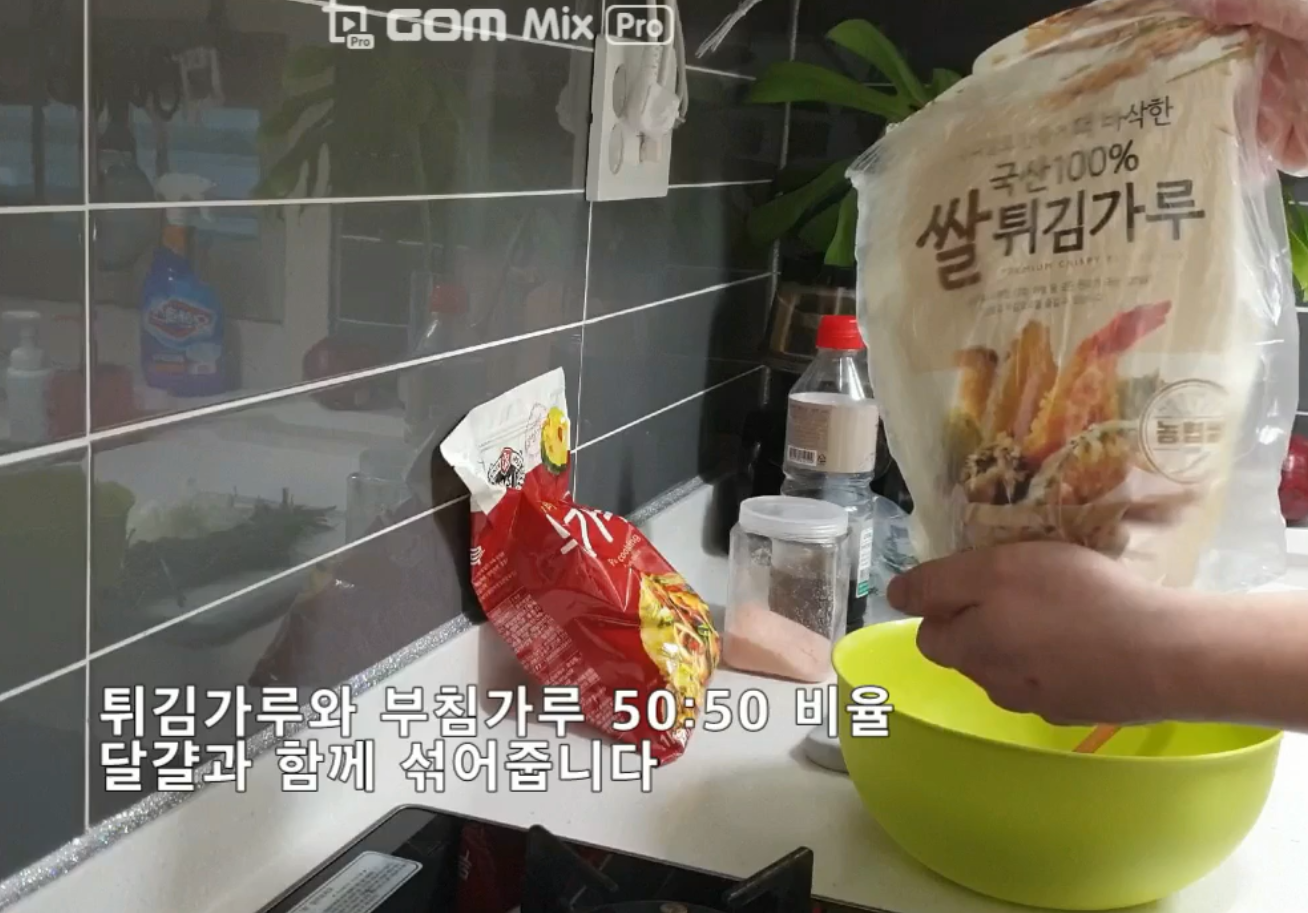100% 부침가루 사용하는 것보단 적정량의 튀김가루 섞어 사용하다 보니 그 맛도 별미입니다.