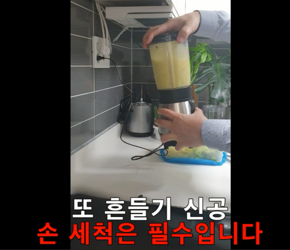 2만 원짜리 믹서기라 말을 듣지 않거나 갈리지 않을 땐 흔들기 신공 들어가시면 됩니다. 위로 아래. 좌로 우로~!!