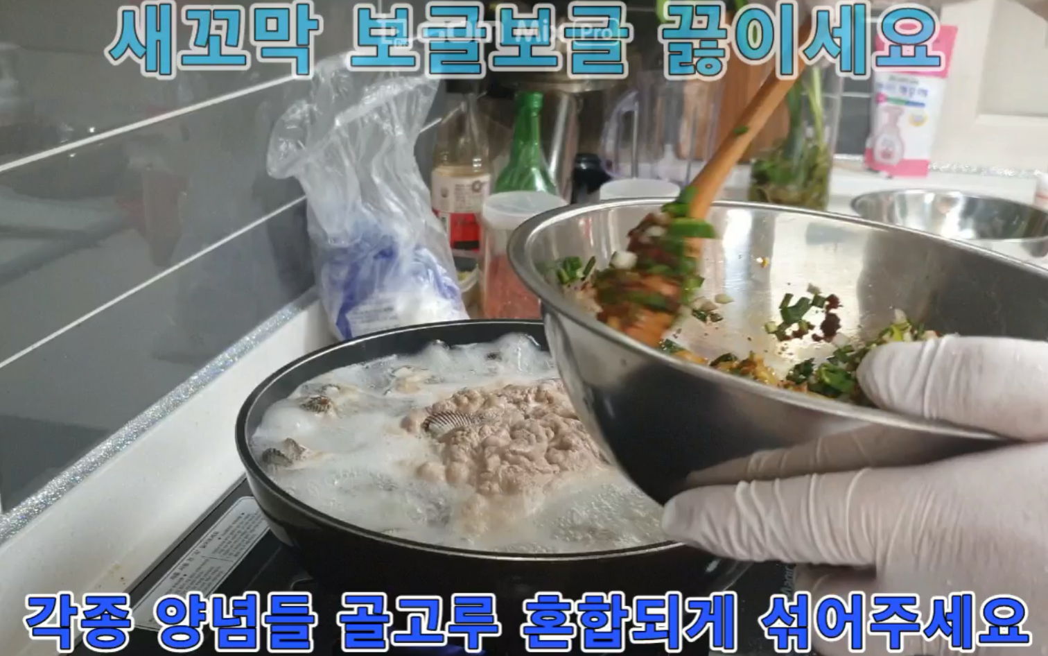 새꼬막이 보글보글 부글부글 자~알 끓는 시간에 양념장을 골고루 열심히 저어주시면 됩니다.