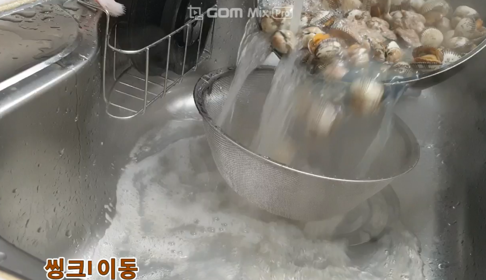 잘 삶아진 꼬막은 싱크대로 이동하여 세척에 또 세척. 깨끗해야 맛있잖아요. 또한 꼬막에서 이물질(돌 등)이 나올 수 있으므로 세척은 필수입니다.