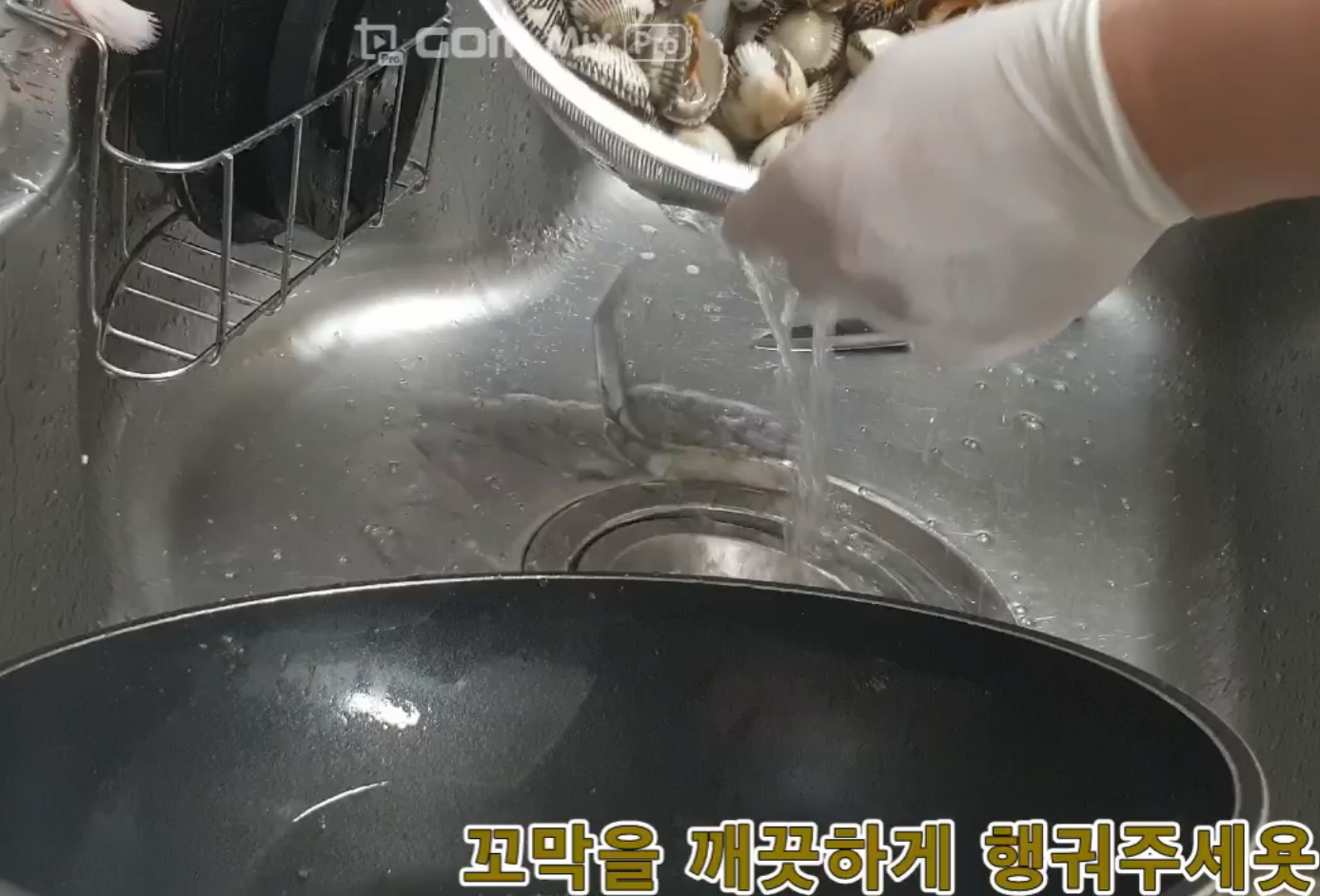 꼬막을 씻고 또 씻고 헹궈주세요.