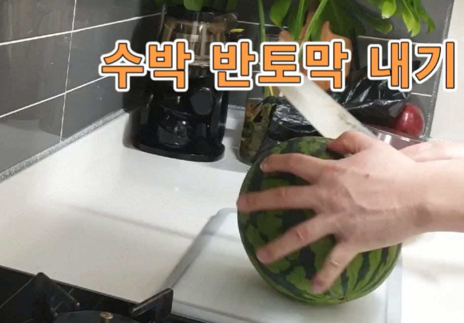 첫 번째로 수박과 접시, 사시미는 아닙니다. 일반 주방용 칼 준비해 주십시오.