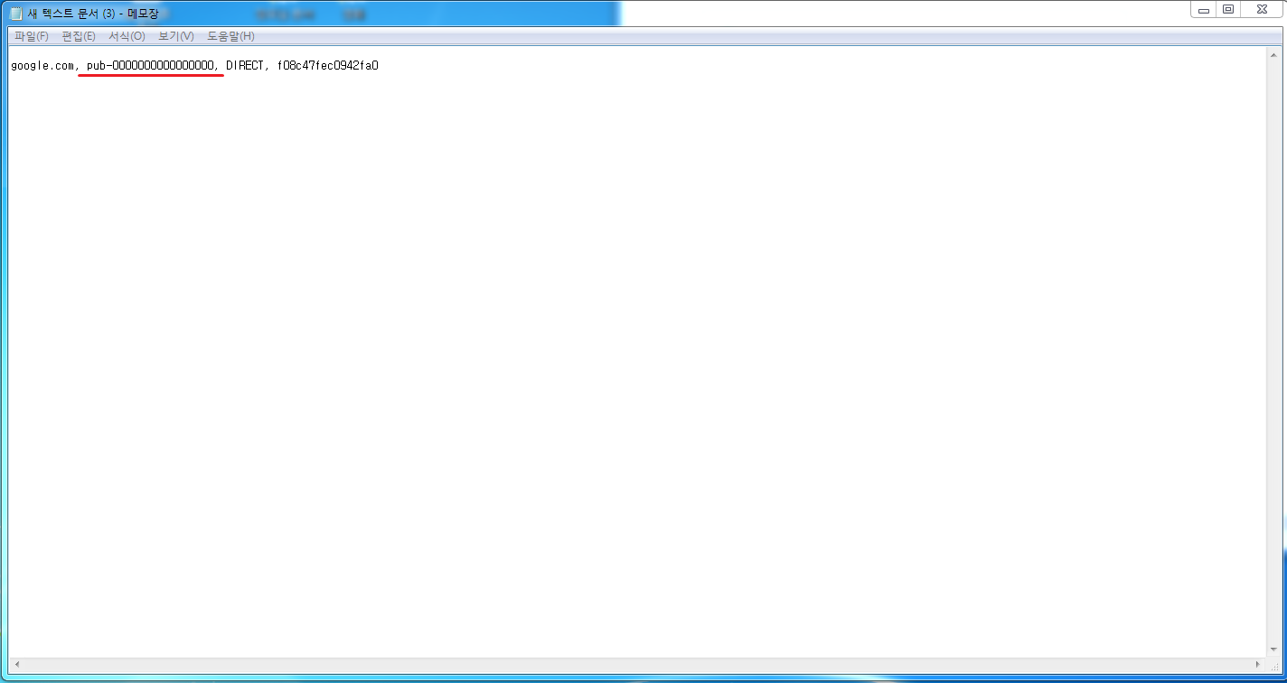 8. 바탕화면 메모장을 하나 만들어 붙여 넣기 합니다. pub-000000000000000 내용만 바꾸면 되는 것입니다.
