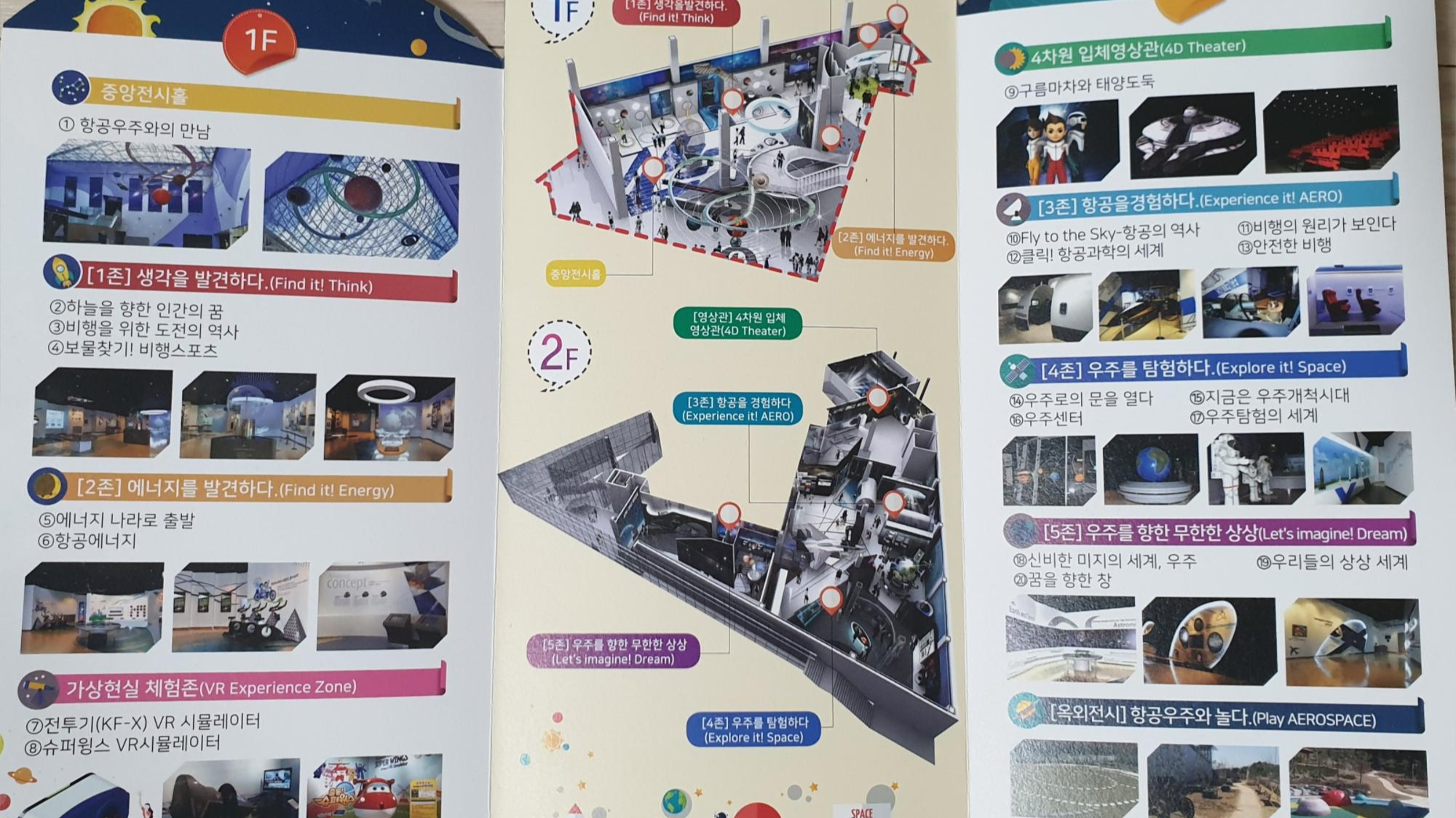 생각을 발견하다. 에너지를 발견하다. 가상현실 체험존. 입체영상관. 항공을 경험하다. 우주를 탐험하다. 우주를 향한 무한한 상상. 옥외 전시. 항공우주와 놀다. 가봐야만 알 것 같다는 이 분위기.