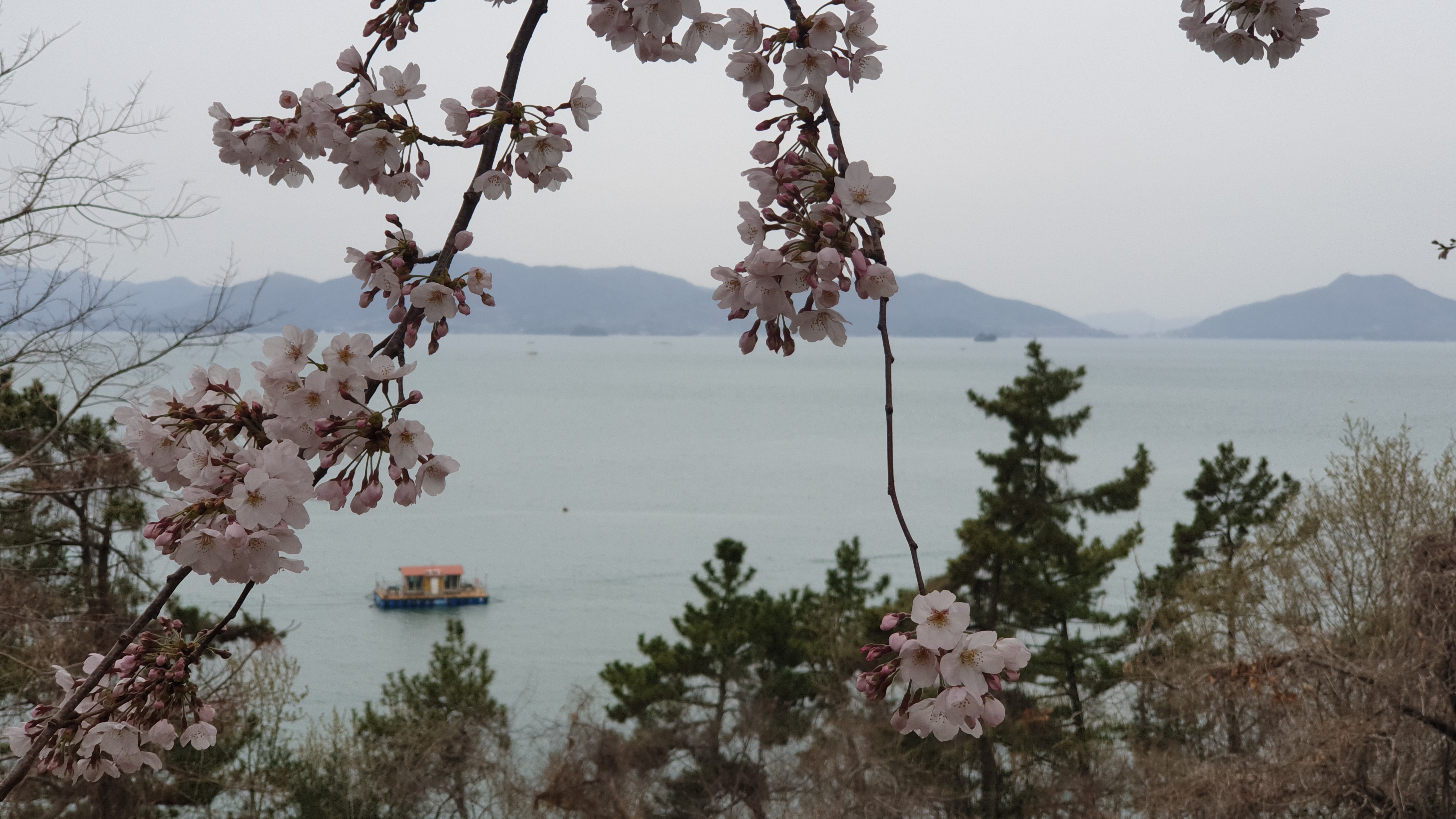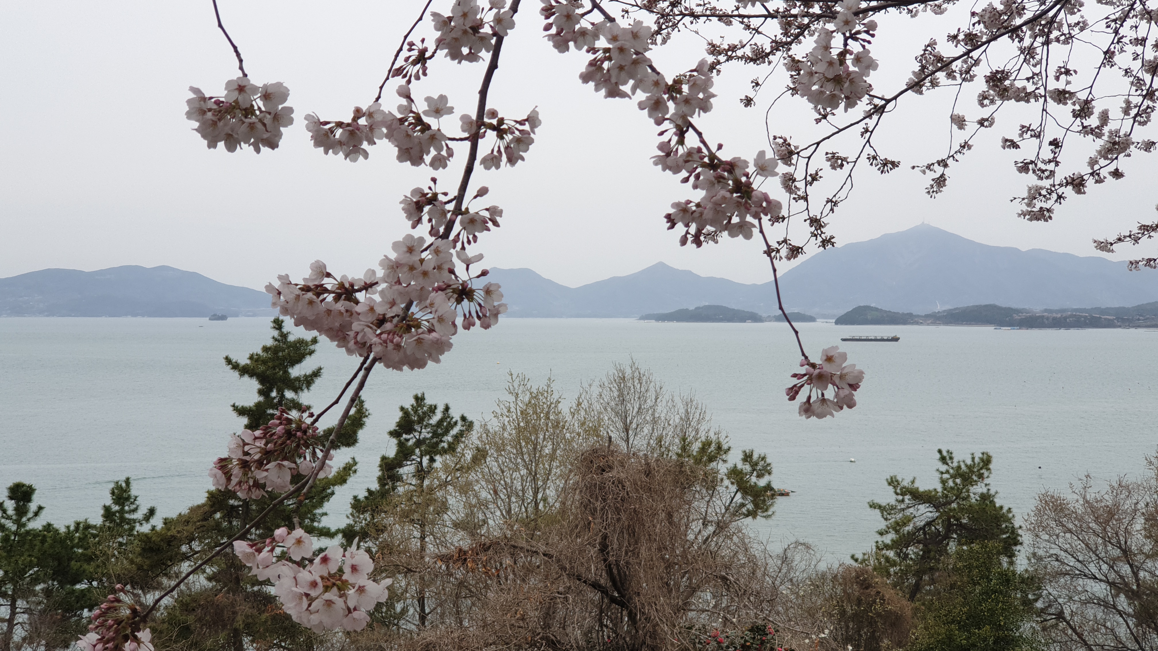 잠시 눈도 침침하고 해서 잠깐 쉬어가는 장소로 적합하더군요. 벚꽃 사진도 자세히 찍고. 바다 공기도 폐 속으로 크게 들이마셔보고. 정말 이뻤습니다.