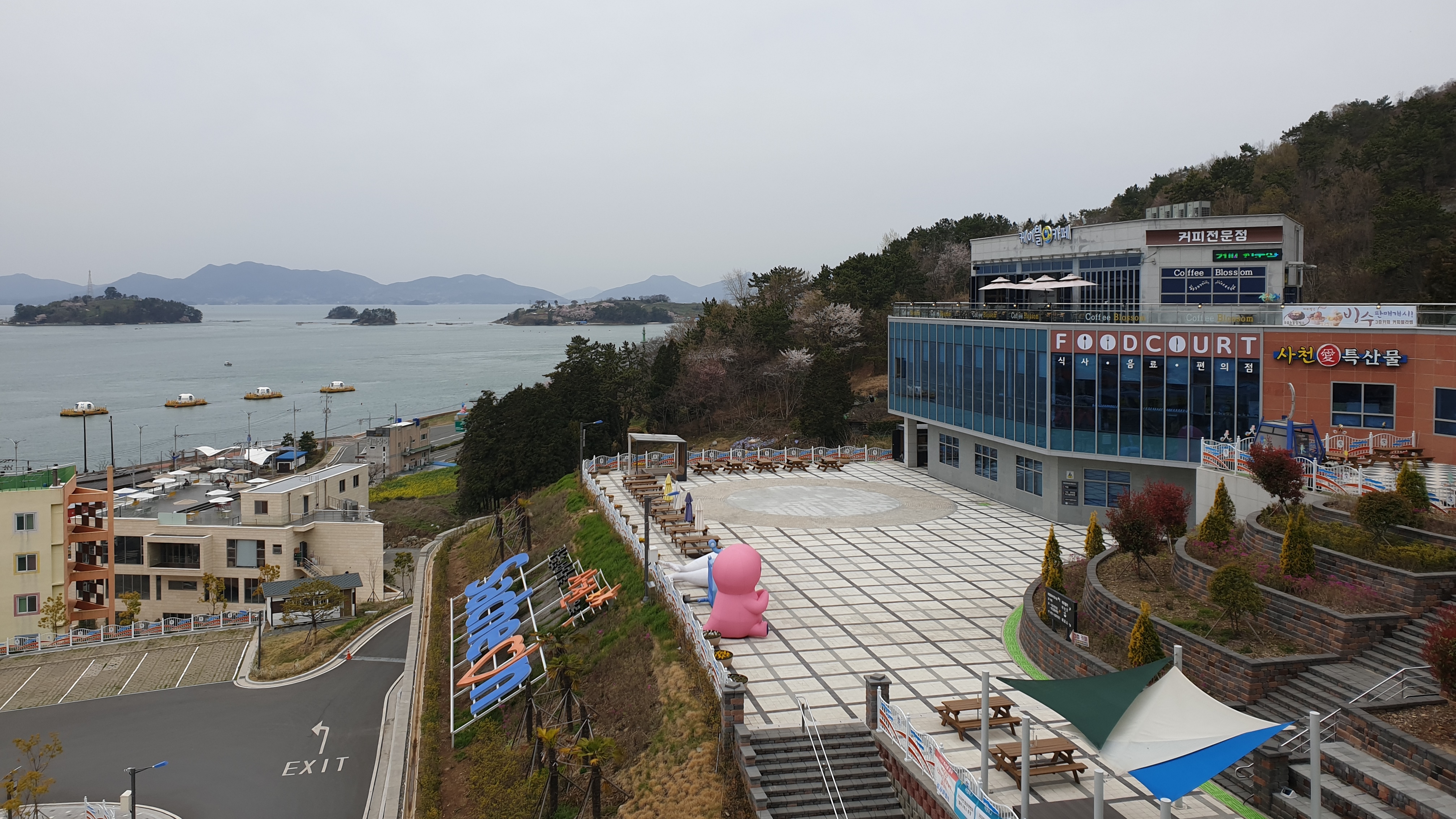 여기는 케이블카 전망대입니다. 남해를 한눈에 볼 수 있는 장소예요.