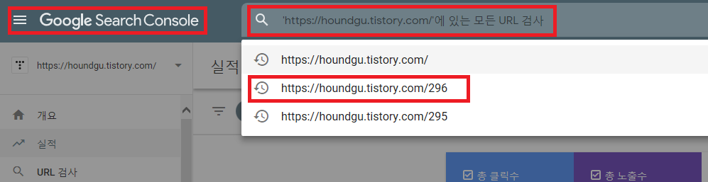 15. 구글 웹마스터 도구로 다시 돌아와서 url 검사 > 오류 사이트 주소 검사합니다.