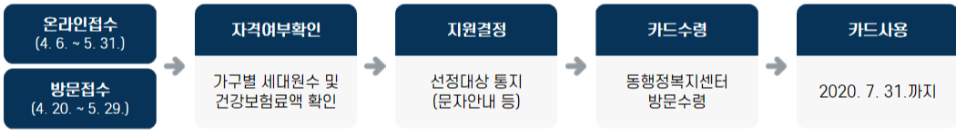 인터넷 접수(2020. 4. 6.~5.31.), 방문접수(2020. 4. 20. ~ 5. 29. / 거주지 동행정복지센터)