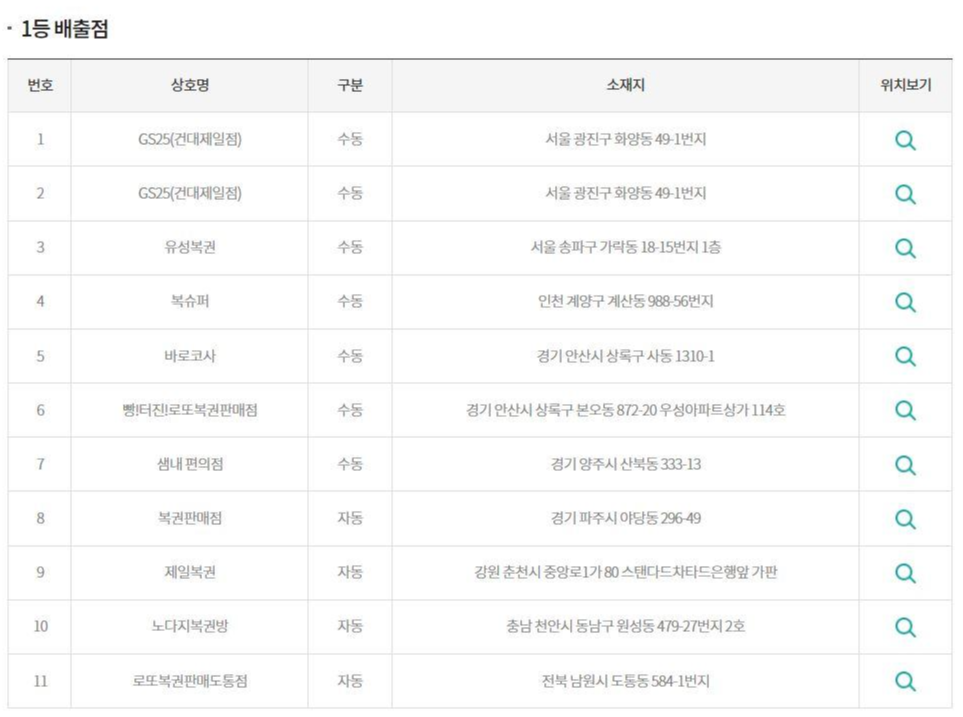 로또동행복권 제909회 배출한 명당점/각 지역 방문할때 꼭 거쳐가야 장소입니다.