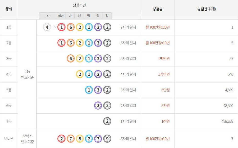 4조 1 6 2 1 3 2 7자리 일치 |