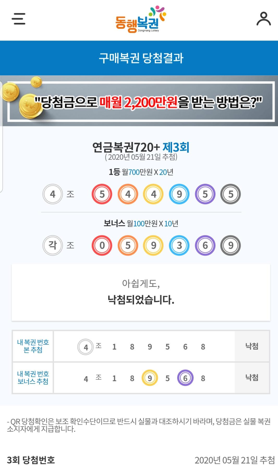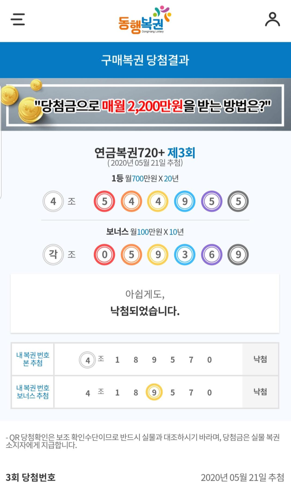 2020년 05월 21일 추첨 3회 당첨결과 인생역전 1등 2등 3등 당첨번호는? 당첨판매점은?