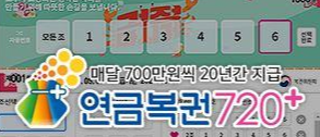 연금복권 720+ 1등 당첨이 된다면 월 700만원씩 20년 동안 당첨금을 지급받는 행운아가 되는 것입니다.