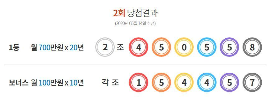 [2020년 05월 14일 추첨 제002회 당첨결과]