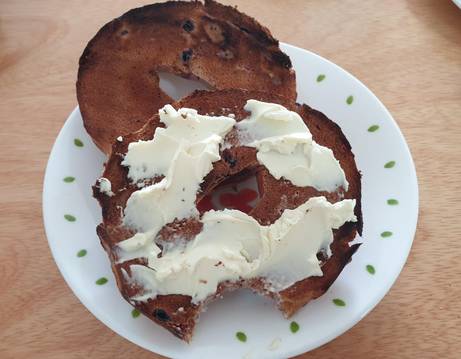 베이글 위 라스카스 크림치즈 살짝 올려보고픈 급한 마음에 테스트해봤습니다.