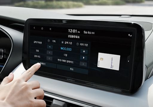 현대 카페이 내비게이션 화면을 통해 제휴된 가맹점이나 현금이나 실물 카드 없이 전용 앱에 등록한 카드로 차량 안에서 간편하게 결제할 수 있어 운전자의 일상에 편의를 더했습니다. |