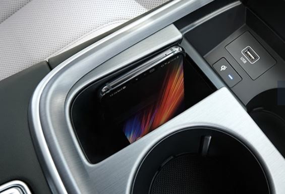 스마트폰 무선충전 무선충전 기능을 지원하는 스마트폰을 별도의 케이블 연결 없이 충전 패드 위에 올려두는 것만으로 편리하게 충전 가능한 편의 장치입니다. |