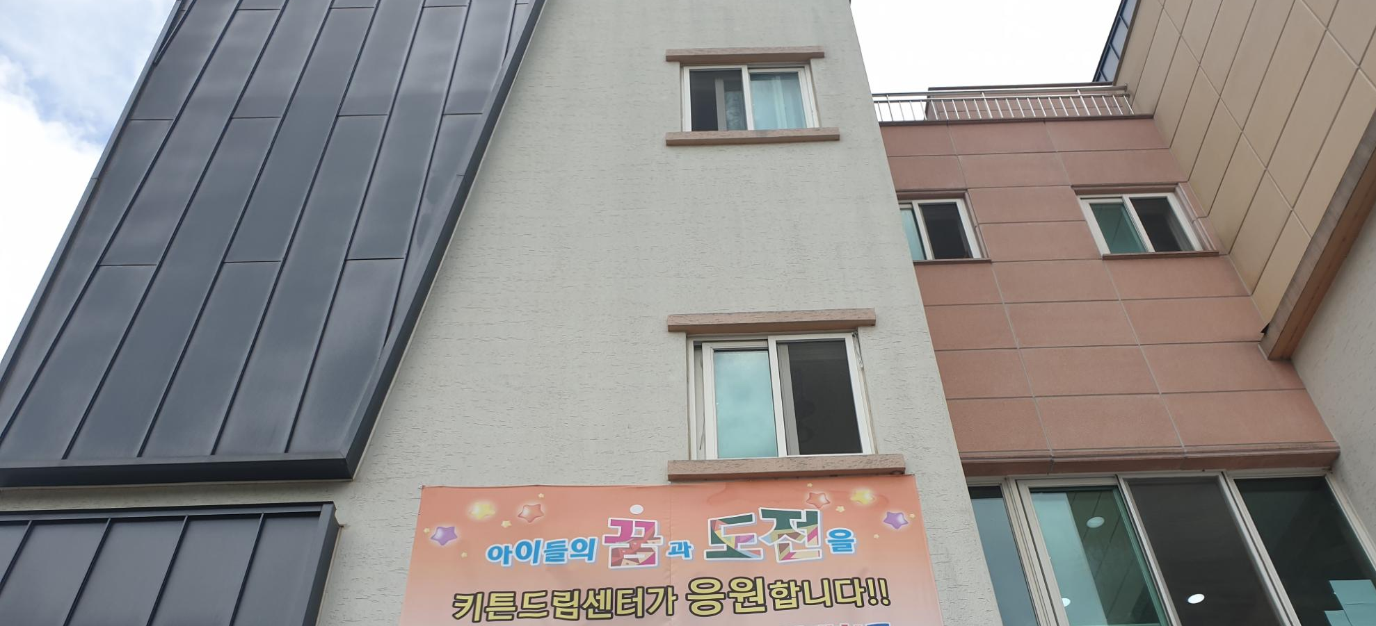 이곳은 바로 아레나 수영복을 입고 어린이 아이들의 꿈과 도전을 키우는 키튼드림센터예요.