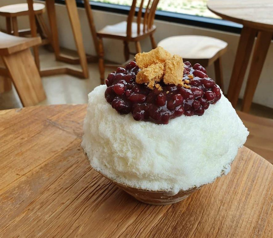 살갑게 잘 갈아서 나온 빙수와 팥에 인절미까지 더해지니. 어때요?