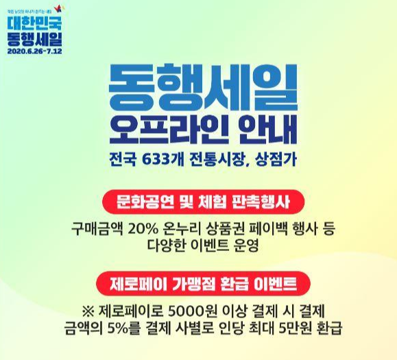 동행 세일 오프라인은 전국 633개 전통시장, 상점가를 대상으로 구매금액의 20%를 온누리 상품권으로 지급하는 페이백 행사를 하네요.