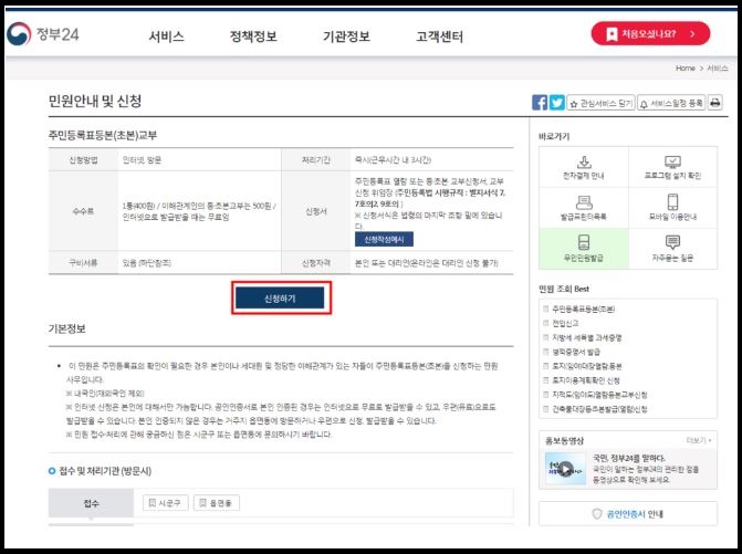 정말 힘들게 주민센터와 동사무소를 방문하지 않고 쉽게 마무리 하였습니다. 정말 짱입니다.