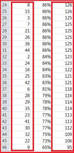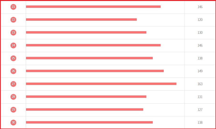 예를 든다면 번호 34번은 1회차에서 938회차까지 1등 당첨번호 당첨시 146번 나왔다는 의미입니다.