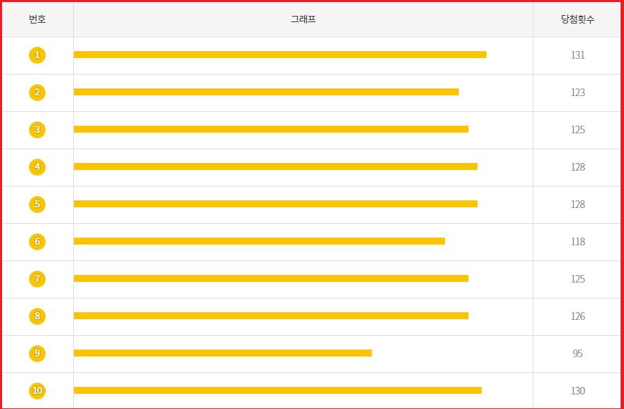 추첨기회당 모든 번호의 확율은 매번 동이랍니다. 하지만 당첨번호 출현빈도를 참고한다면 조금이나마 로또1등 당첨에 다가서는 듯하게 기분은 쪼금은 달라지지 않을까 하는 생각입니다.