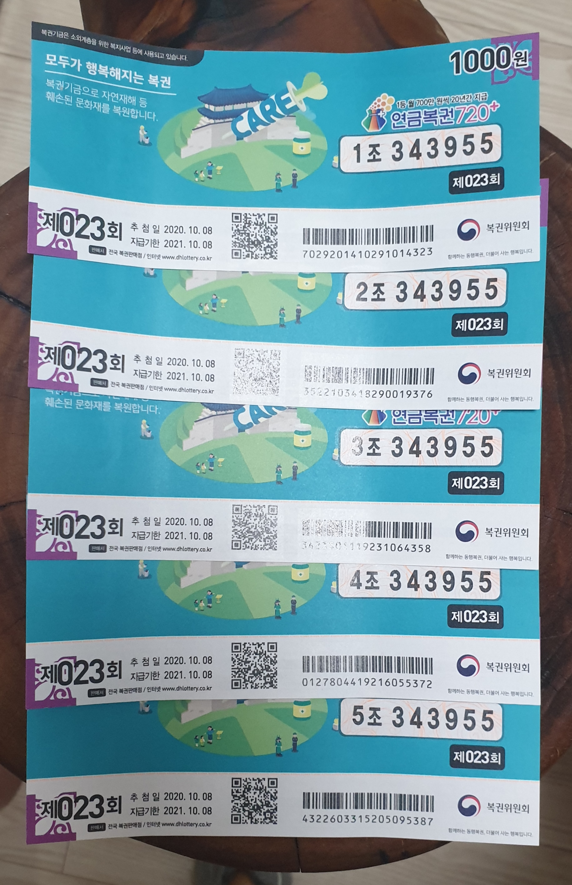 "연금복권 720+ 23회 세금 떼고 546만 원 받고 싶다"