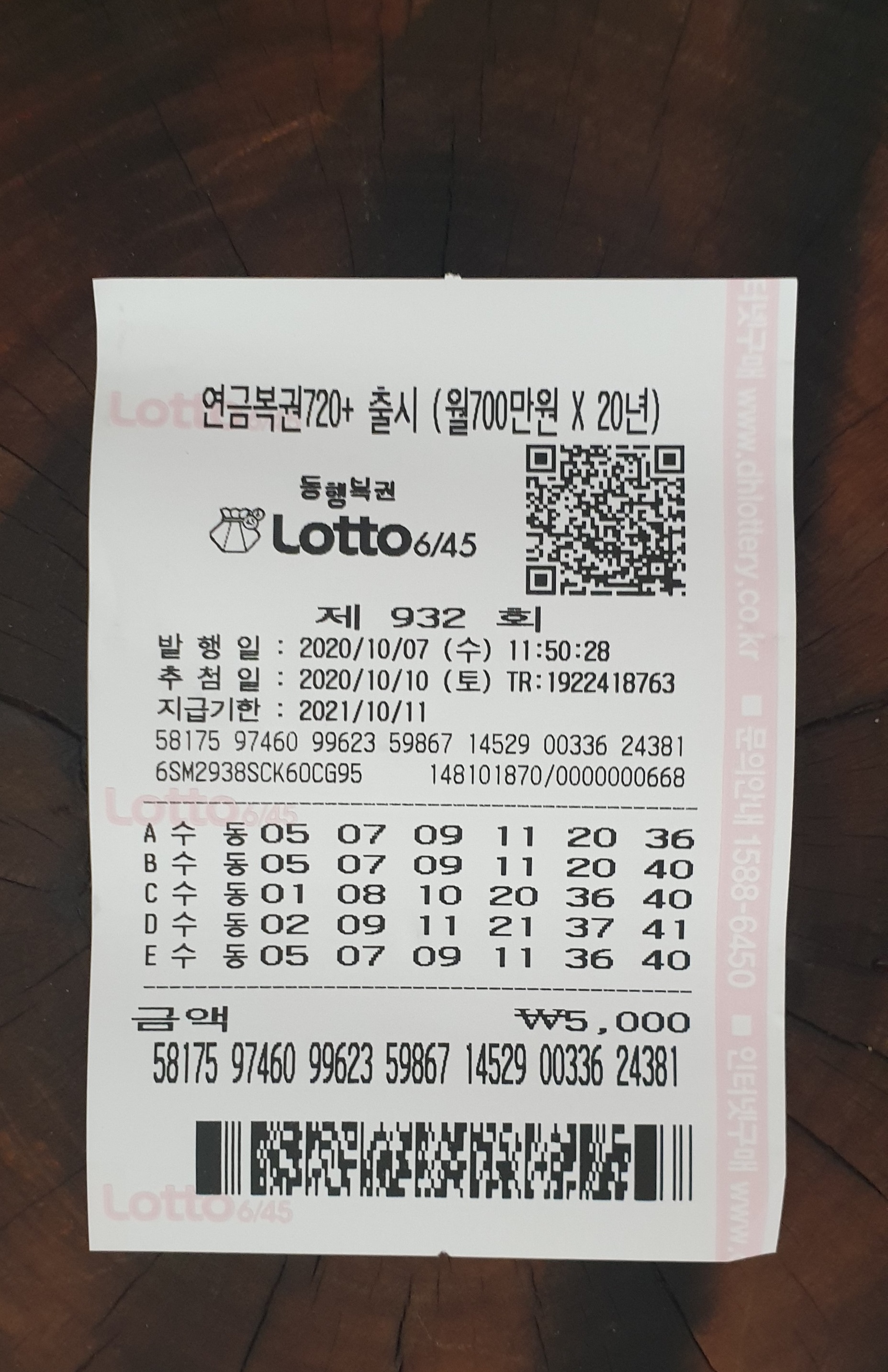 | 연금복권 720+ 제024회 월78만원의 꿈 (0) | 2020.10.08 |