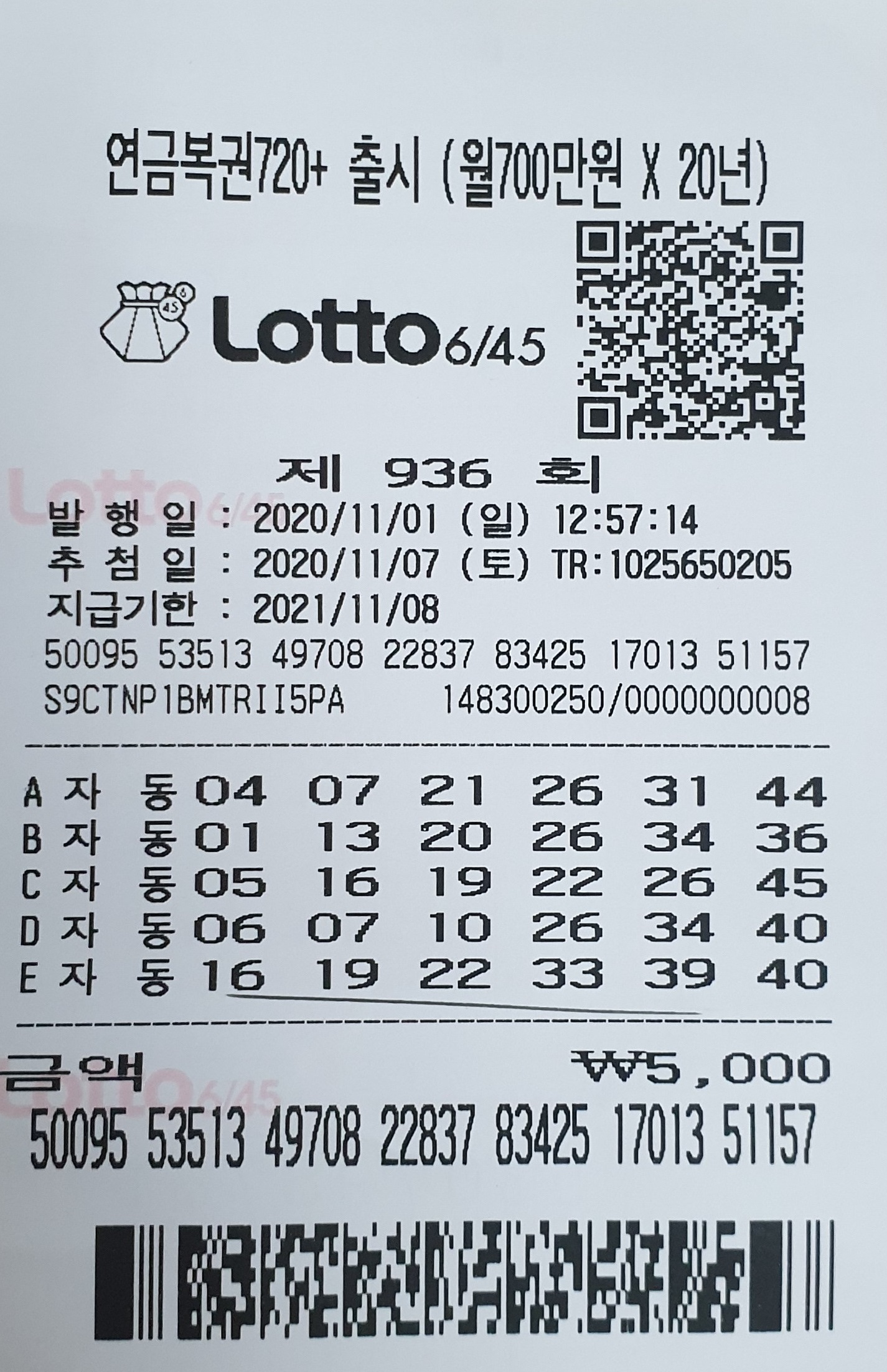 로또 936회 예상번호 자동번호 발행일 2020년 11월 01일 일요일/추첨일 2020년 11월 08일 토요일 20시 45분 로또번호 일정 마무리해봅니다.