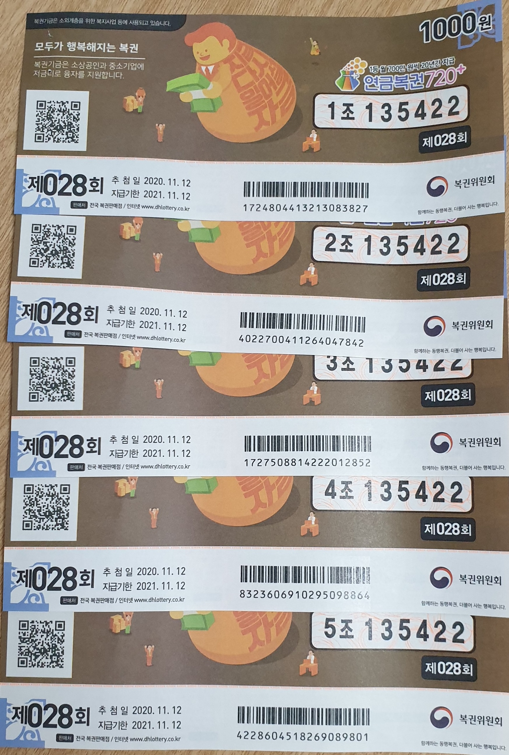 연금복권 720 28회 자동번호로 연금복권 세트 이번주에도 세금공제전 월 100만원 아니 월 700만원 꿈같은 1등 번호 도전합니다. 복권에 대한 일확천금을 고스란히 손에 쥐는 그날까지 이번주에도 5,000원 투자해봅니다.