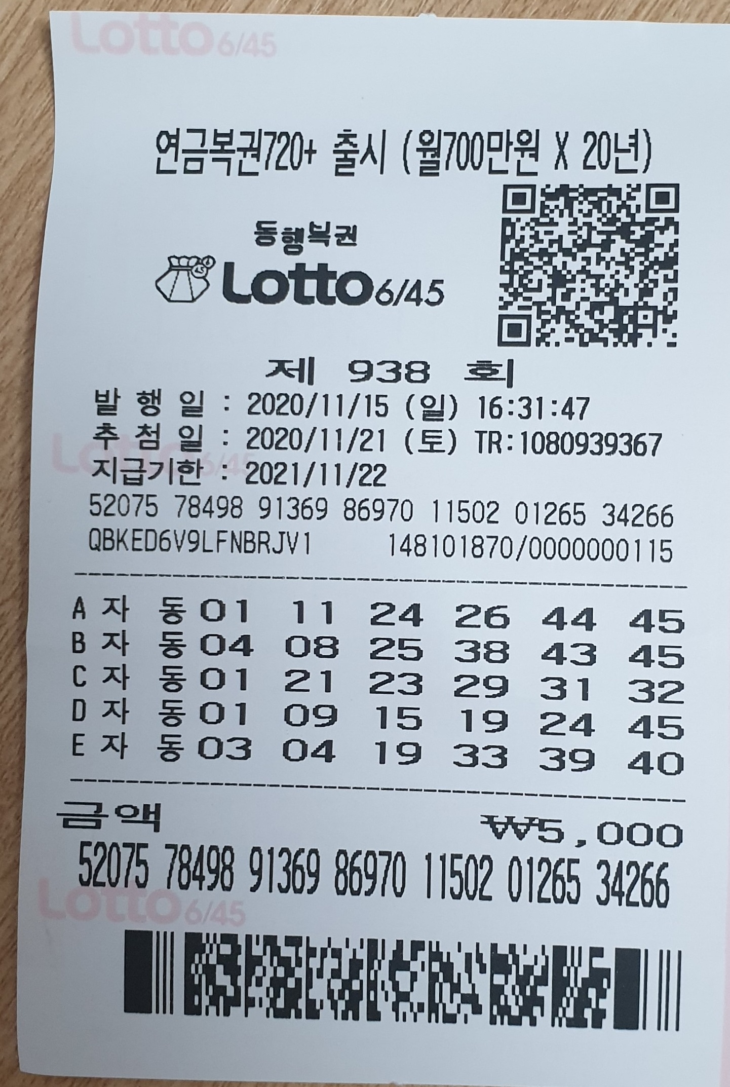 로또 938회 예상번호 자동번호 발행일 2020년 11월 15일 일요일 / 추첨일 2020년 11월 21일 토요일 20시 45분 로또번호 일정 마무리합니다.