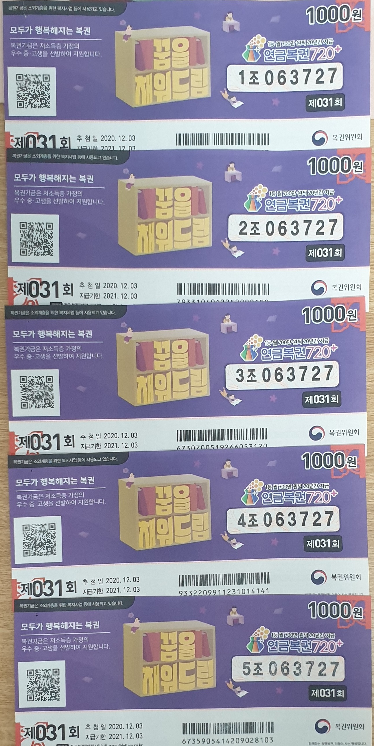 모처럼 꽝이라는 낙첨으로 연금복권 720+제31회 로또 예상번호 로또플레이 자동으로 연금복권 세트 5천 원어치 구입해봅니다. 동일번호 토토복권도 도전 한번 해볼까요?