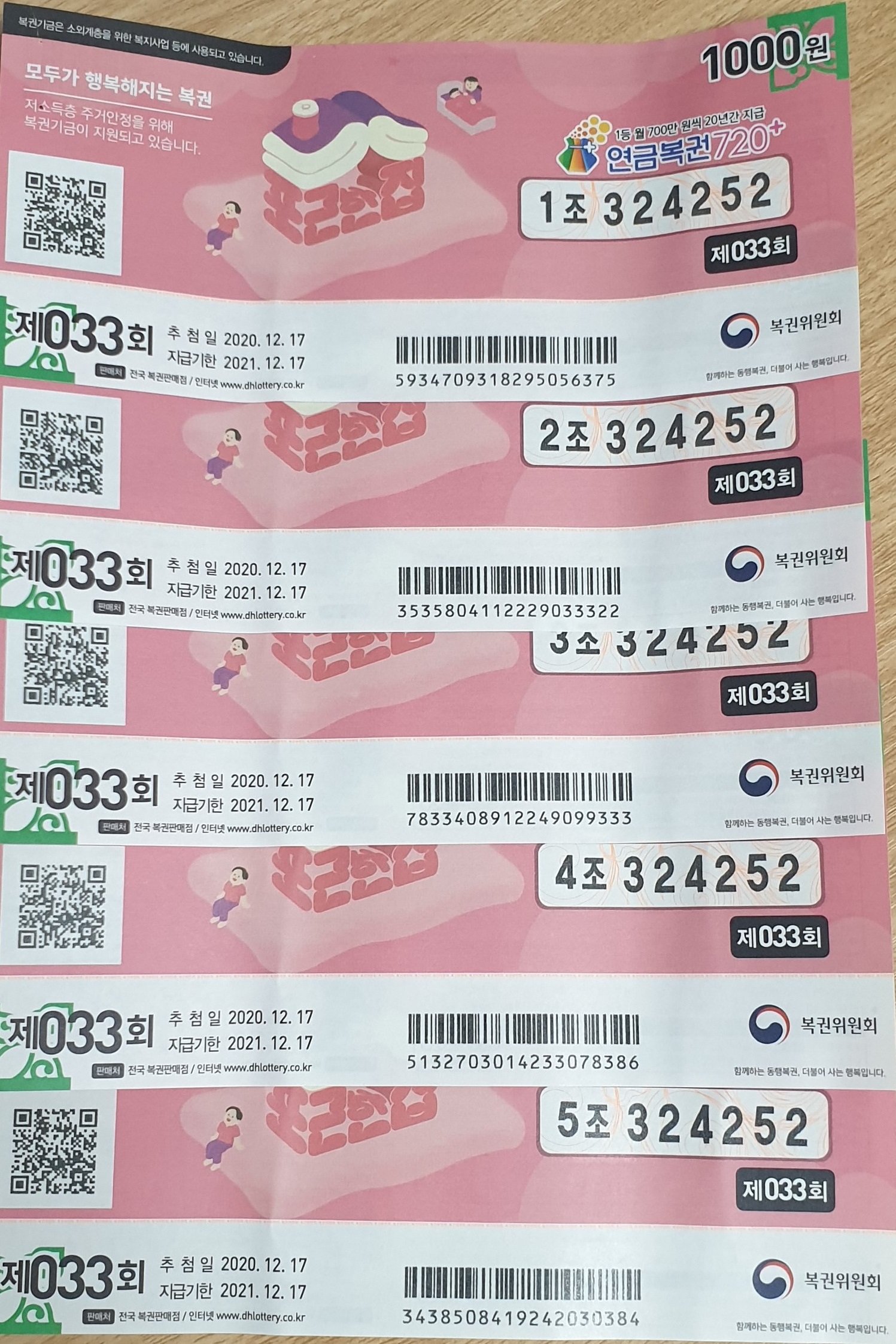 2등은커녕 5등도 되지 않았지만 연금복권 720+제33회 예상수 로또 당첨금 추첨시간 기다려보며 이번 주에도 5천 원의 큰 투자를 해봅니다.