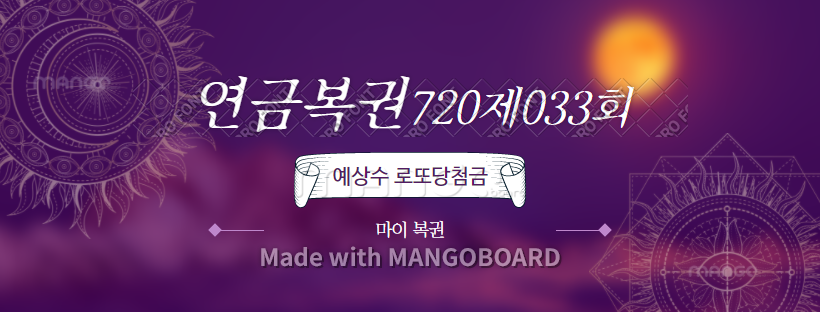 터무니없는 확률게임의 연금복권이라지만 당첨만 되면 목돈을 받아쓰는 것보다 매월 임대수익처럼 받는 것으로 오히려 자산을 지키고 효율적으로 관리가 좋다는 연금복권 720+제33회 예상수 자동으로 노려봅니다.