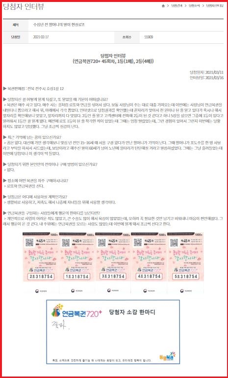 연금복권 당 첨후기가 자세히 나타나 있습니다.