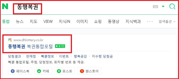 네이버 또는 다음포털, 줌, 야후, 네이트, 구글포털등을 통해 동행복권 홈페이지로 이동합니다.